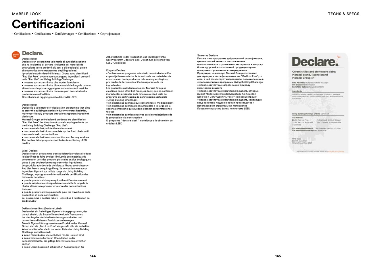 I prodotti autodichiarati di Marazzi Group sono classificati