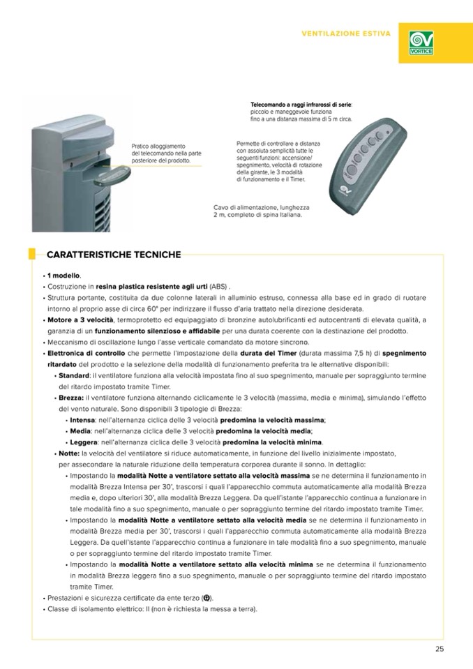 • Brezza: il ventilatore funziona alternando ciclicamente le 3 velocità (massima, media e minima), simulando l’effetto