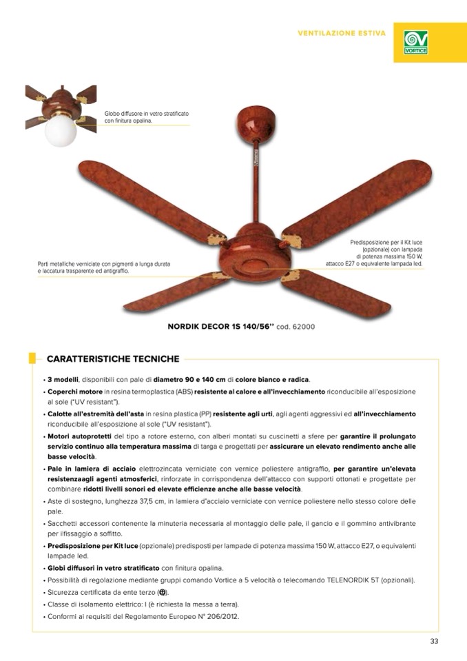 • 3 modelli, disponibili con pale di diametro 90 e 140 cm di colore bianco e radica.