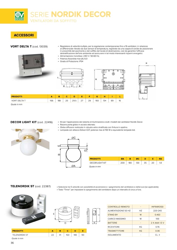 • Kit per l’applicazione del sistema di illuminazione a tutti i modelli dei ventilatori Nordik Decor.