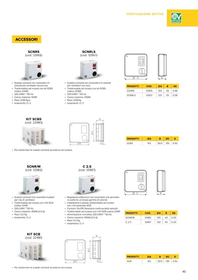 • Scatole comandi non reversibili a 5