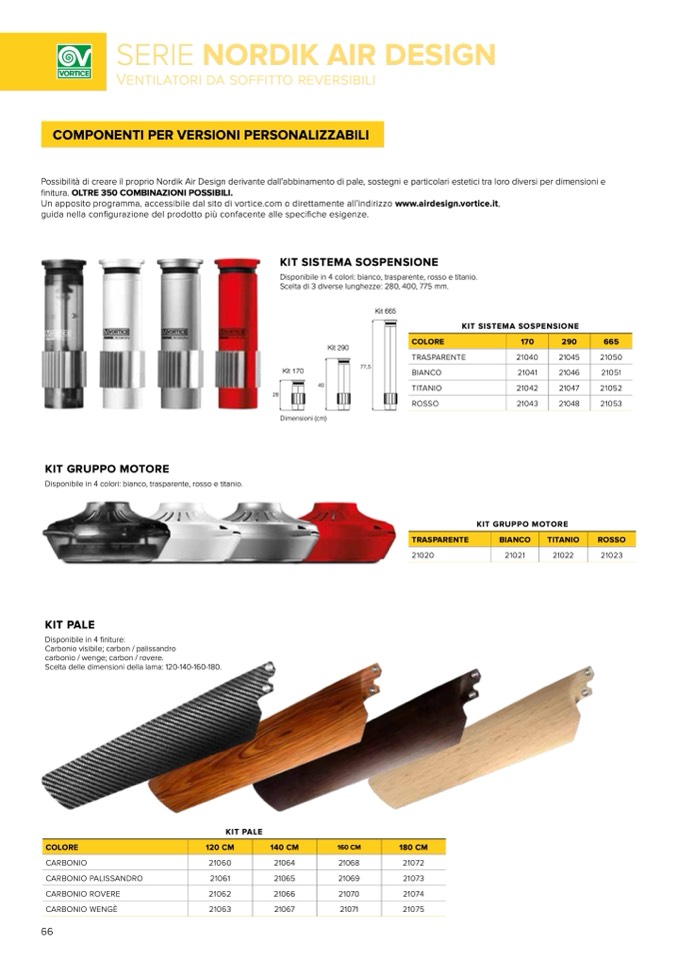 Possibilità di creare il proprio Nordik Air Design derivante dall'abbinamento di pale, sostegni e particolari estetici tra loro diversi per dimensioni e