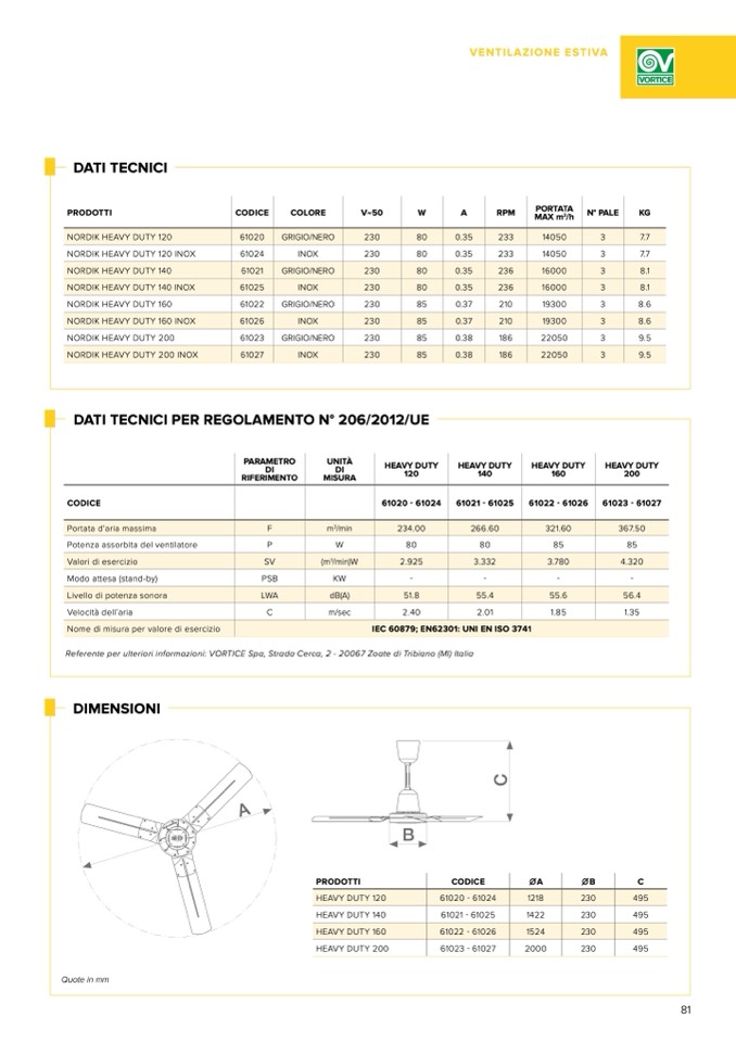 Referente per ulteriori informazioni: VORTICE Spa, Strada Cerca, 2 - 20067 Zoate di Tribiano (MI) Italia