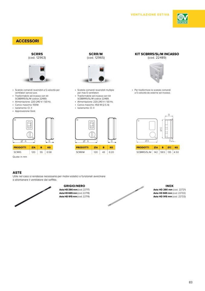• Scatole comandi reversibili a 5 velocità per