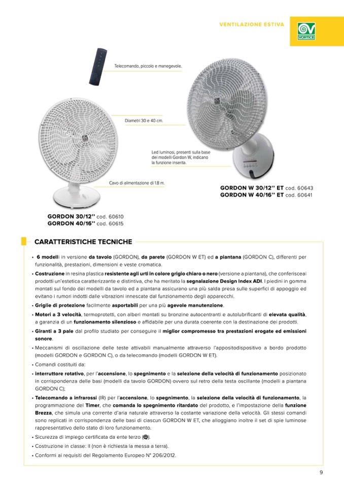 in corrispondenza delle basi (modelli da tavolo GORDON) ovvero sul retro della testa oscillante (modelli a piantana