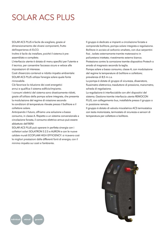 SOLAR ACS PLUS utilizza l’energia solare quale fonte
