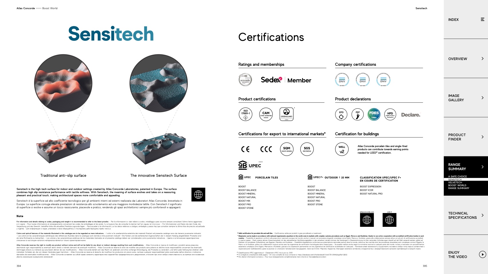 Sensitech is the high-tech surface for indoor and outdoor settings created by Atlas Concorde Laboratories, patented in Europe. The surface