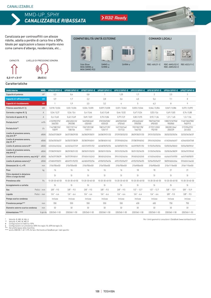 Per i limiti geometrici consultare il DataBook (www.toshibaclima.it)