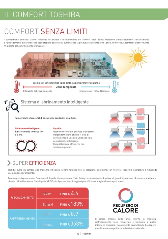 Toshiba punta da sempre alla massima efficienza. SHRM Advance non fa eccezione, garantendo un notevole risparmio energetico e riducendo