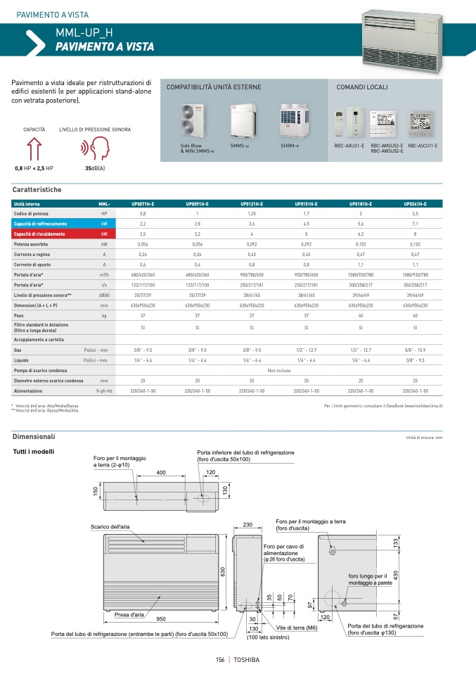 Per i limiti geometrici consultare il DataBook (www.toshibaclima.it)
