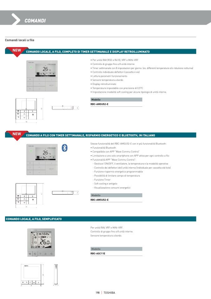 COMANDO A FILO CON TIMER SETTIMANALE, RISPARMIO ENERGETICO E BLUETOOTH, IN ITALIANO