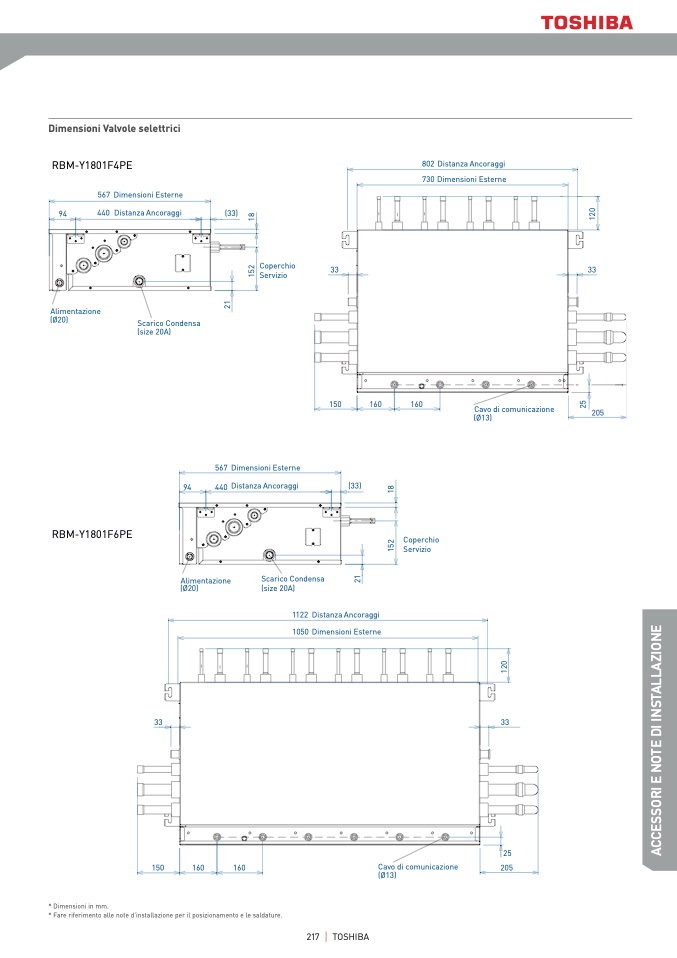 * Fare riferimento alle note d’installazione per il posizionamento e le saldature.