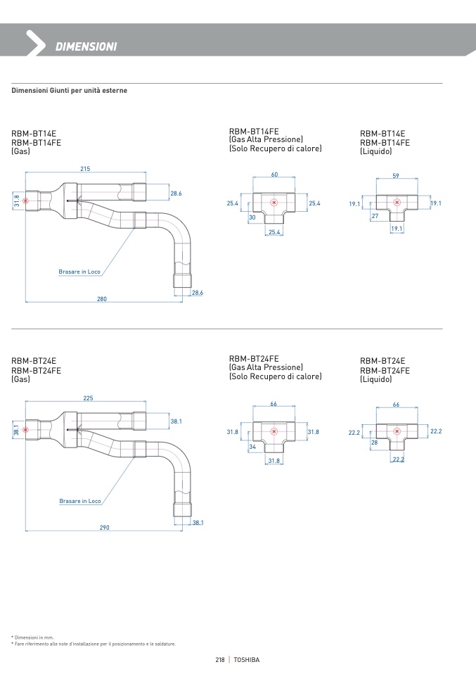 * Fare riferimento alle note d’installazione per il posizionamento e le saldature.