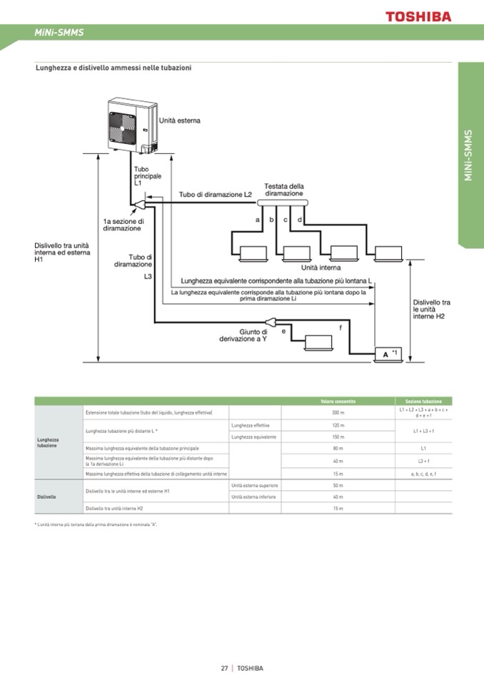 Dislivello tra le unità interne ed esterne H1