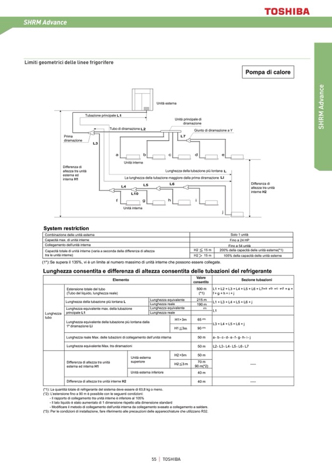 (*1): La quantità totale di refrigerante del sistema deve essere di 63,8 kg o meno.