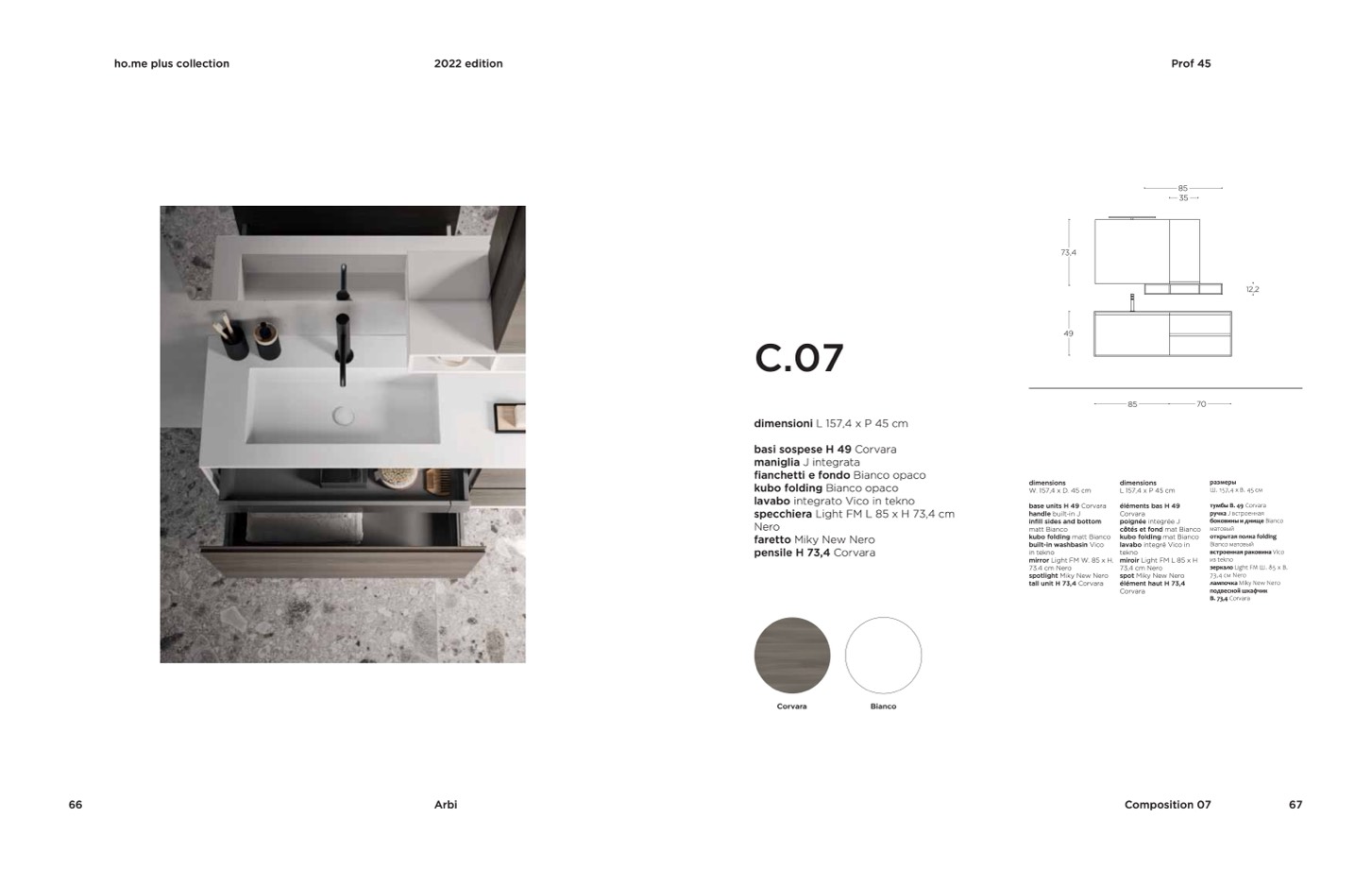 dimensioni L 157,4 x P 45 cm