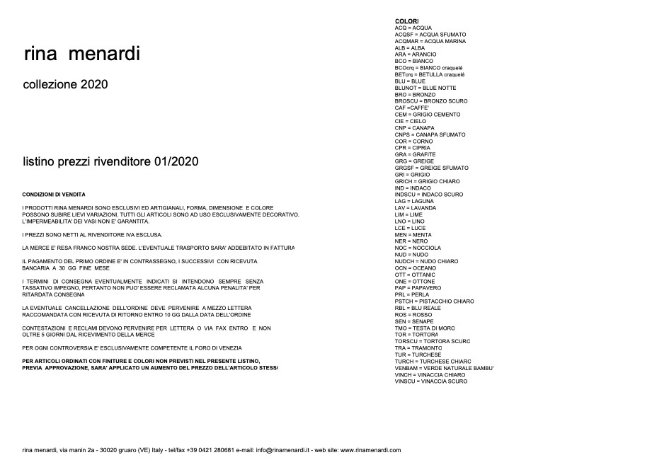 价目表 Rina Menardi Collezione 2020