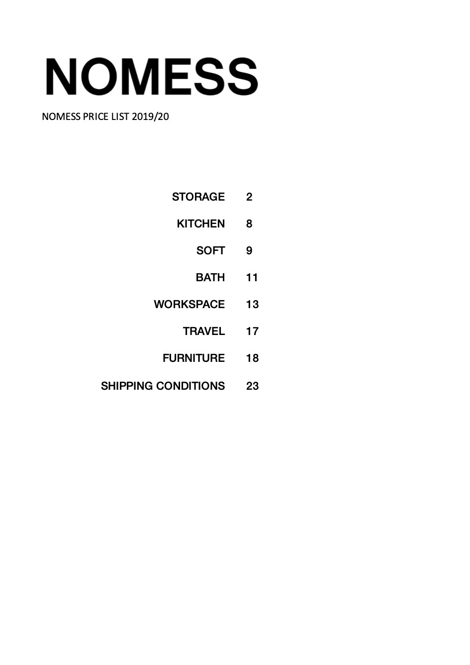 价目表 Nomess 2019/20